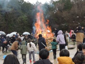 今日のために、五箇・吉原の地域づくり協議会の皆さんにお世話になり、竹などの材料を準備していただきました。このような伝統ある左義長が実施できることに深く感謝しています。ご協力いただいたみなさん、本当にありがとうございました。