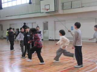 3回目となる今回は、4チームに分かれての大縄跳び(八の字跳び)と自己紹介、全員で輪になって校歌を歌いました。