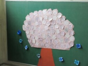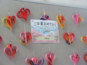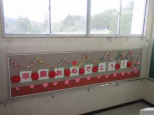 卒業式前日に飾っただけでは、卒業生が見る時間が少ないため、早くから飾り付けをしています。