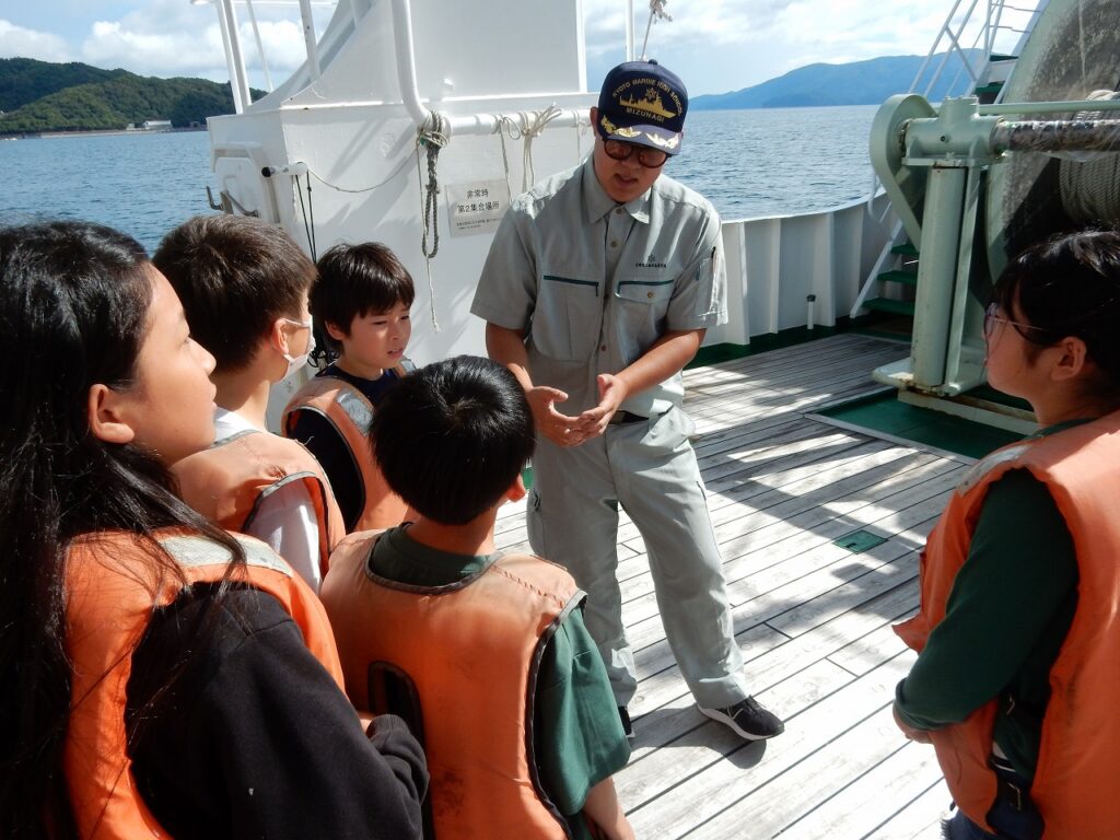 学びをつなげる 学校の様子 Twitter Facebook はてブ Pocket LINE コピー 2025.10.03 5年生は、京都府立海洋高等学校に行き、実習船「みずなぎ」に乗船させてもらったり、栽培漁業の施設見学をさせてもらったりしました。船での生活や漁業の実習、ふぐの養殖の様子などを高校生から直接聞くことで、授業での学びが実際のものとしてつながりました。 Post Views: 21