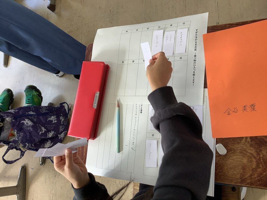 3年生国語科「すがたをかえる大豆」での研究授業を行いました。文章構成や例の書き方などを筆者の文章から学んだことをもとに、自分がえらんだ食材の「食べ物のひみつ」を本から読み取り、メモにしたものをもとに書き方の工夫について考えました。友達の意見も参考にしながら、より分かりやすく伝える文章にしていきます。
