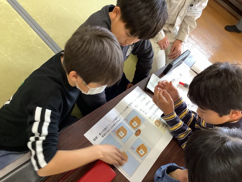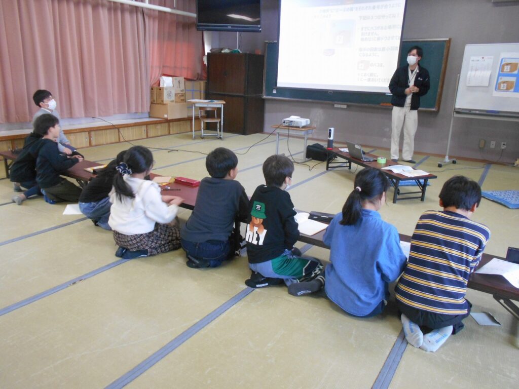 丹後教育局の事業の一環で、5年生は日進ProSOLの方にお世話になり、「スマートファクトリー」について学びました。自分たちが考えた動きをロボットに伝えると、ロボットが正確に荷物を運ぶ様子を体験し、人間とロボットが一緒に働く良さを感じました。
