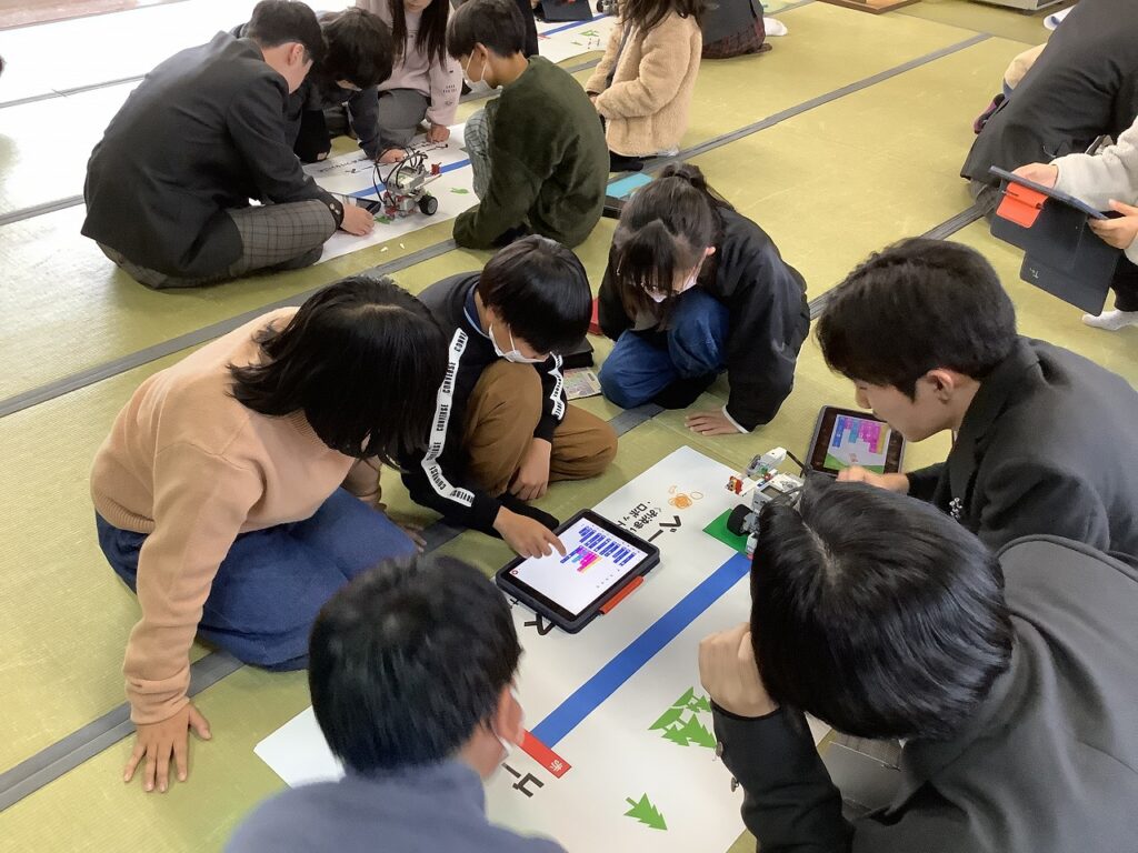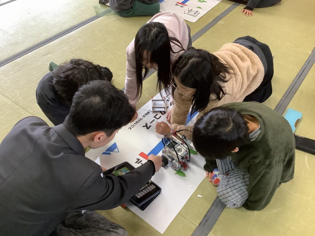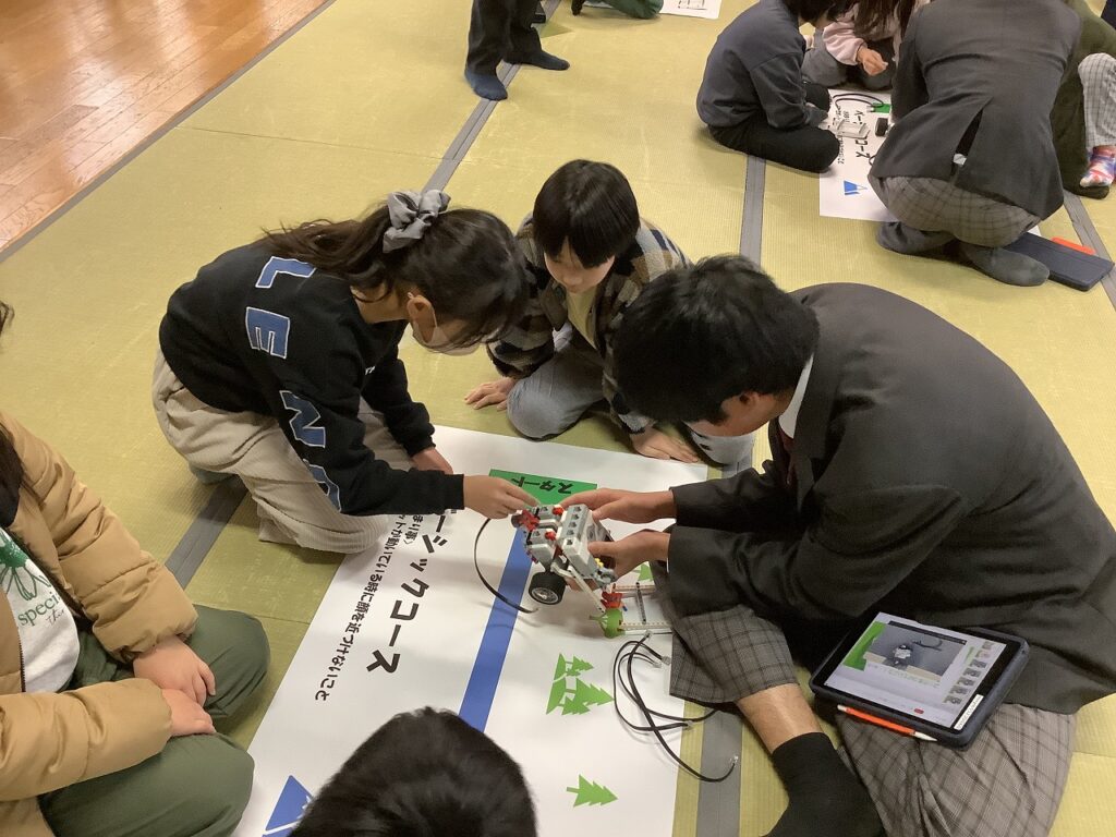 4年生は、京都府丹後局の事業の一環で、プログラミング学習に取り組みました。峰山高校の生徒さんたちに教えてもらいながら、プログラムを設定してロボットを動かすことに挑戦しました。「難しいけど高校生に教えてもらってできた。」「プログラミングクラブでプログラミングの仕方は知っているけど、新しいことも学べた。」と、目を輝かせていました。