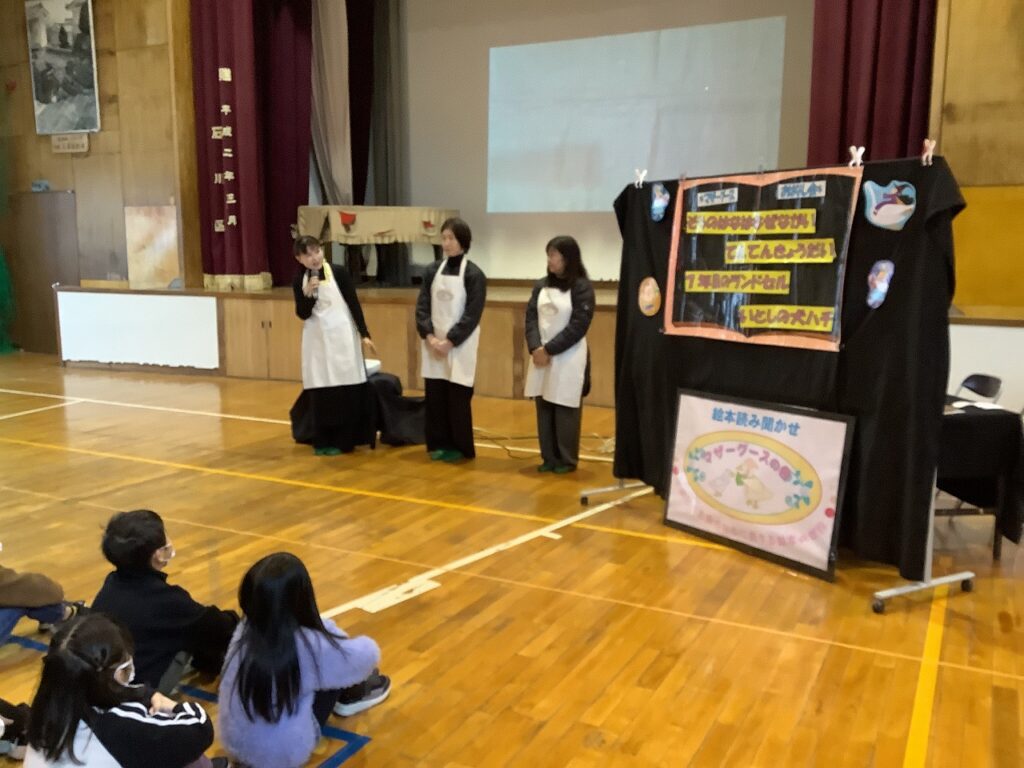 今年も、マザーグースの皆さんに読み聞かせをしていただきました。子どもたちは、本の世界に引き込まれ、様々な感情になっていたと思います。普段、手に取らない本にも出あうことができ、本から得る知識や創造力はとても貴重です。これからも、読書の楽しさが味わえるよう取り組んでいきたいです。