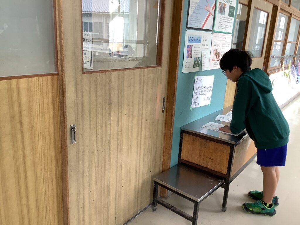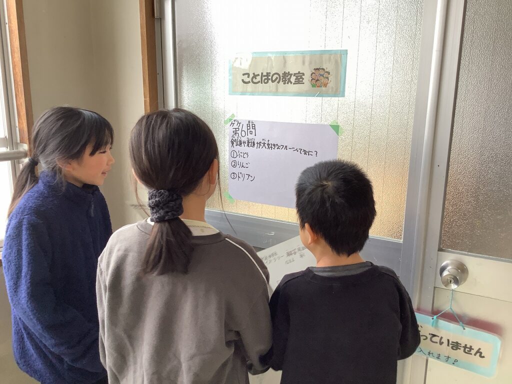 各委員会で様々な取組をしていますが、放送委員会は、外で遊べなくてもみんながたのしめるようにと、「クイズラリー」を企画してくれました。校舎内に貼ってあるクイズに挑戦し、解答用紙を放送室前の箱に入れます。全問正解を目指して取り組む子どもたちの姿がありました。