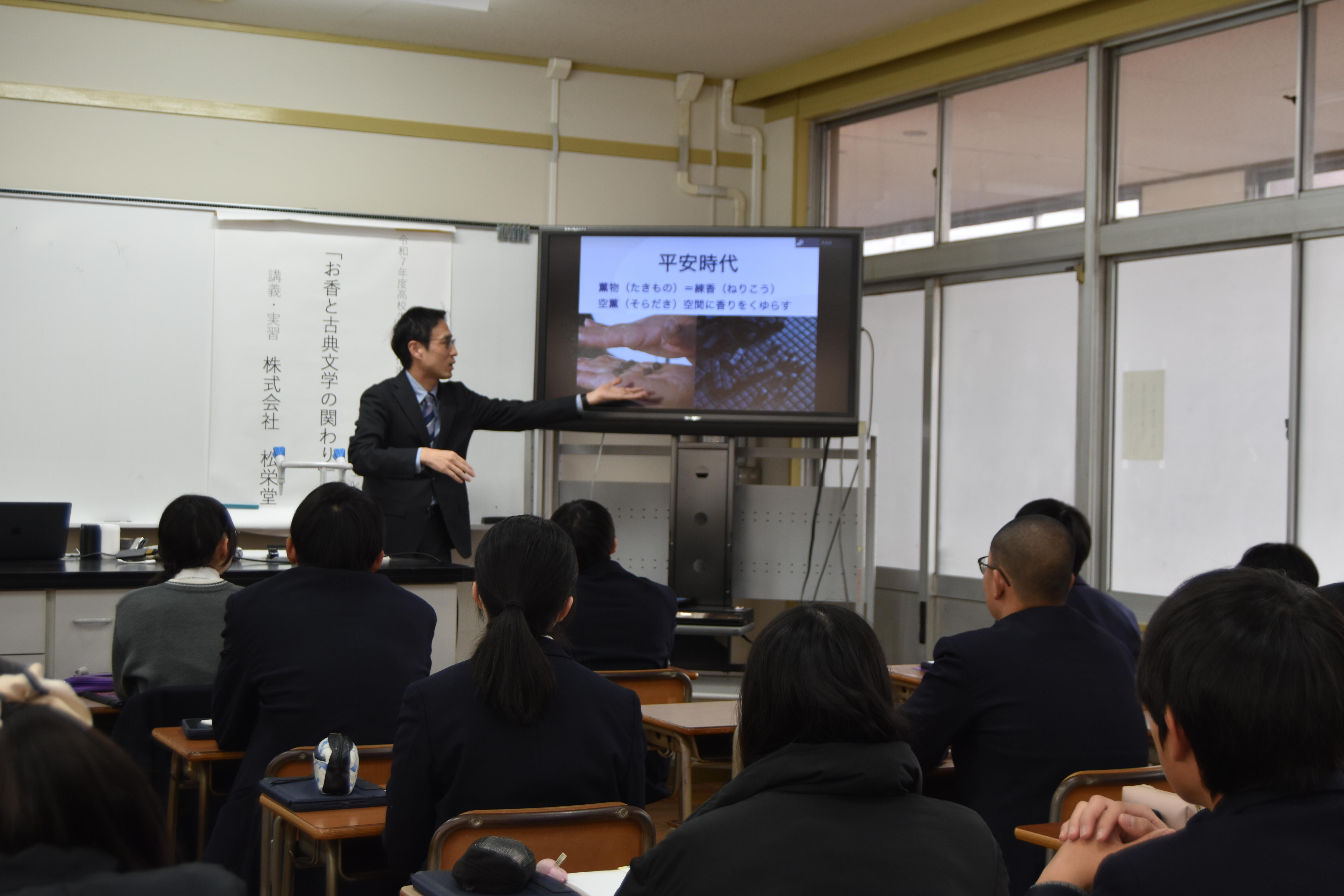 2年生教養科学科人文・社会学系統の生徒を対象に、文学探究の特別授業「お香と古典文学の関わり」を実施しました。