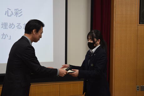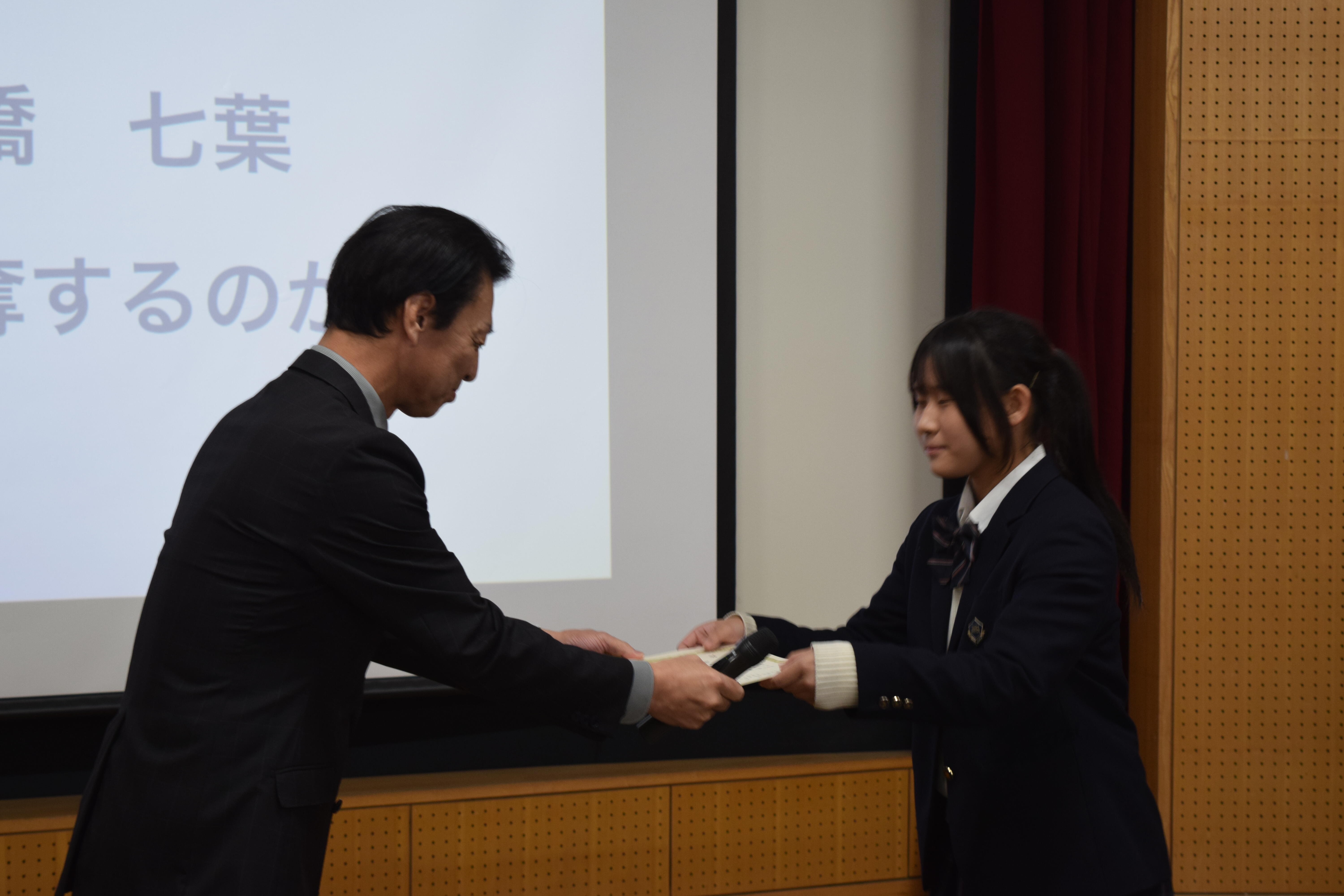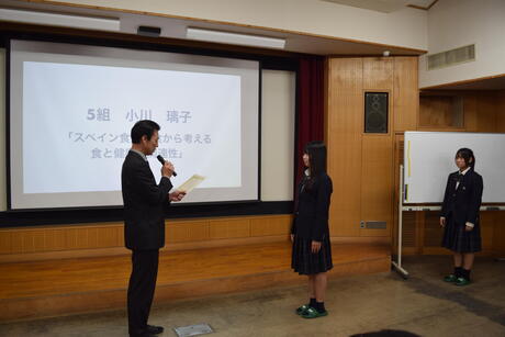 そして、生徒の相互評価と本校教員の審査結果を総合的に判断し、高い成績を修めた生徒達を表彰しました。