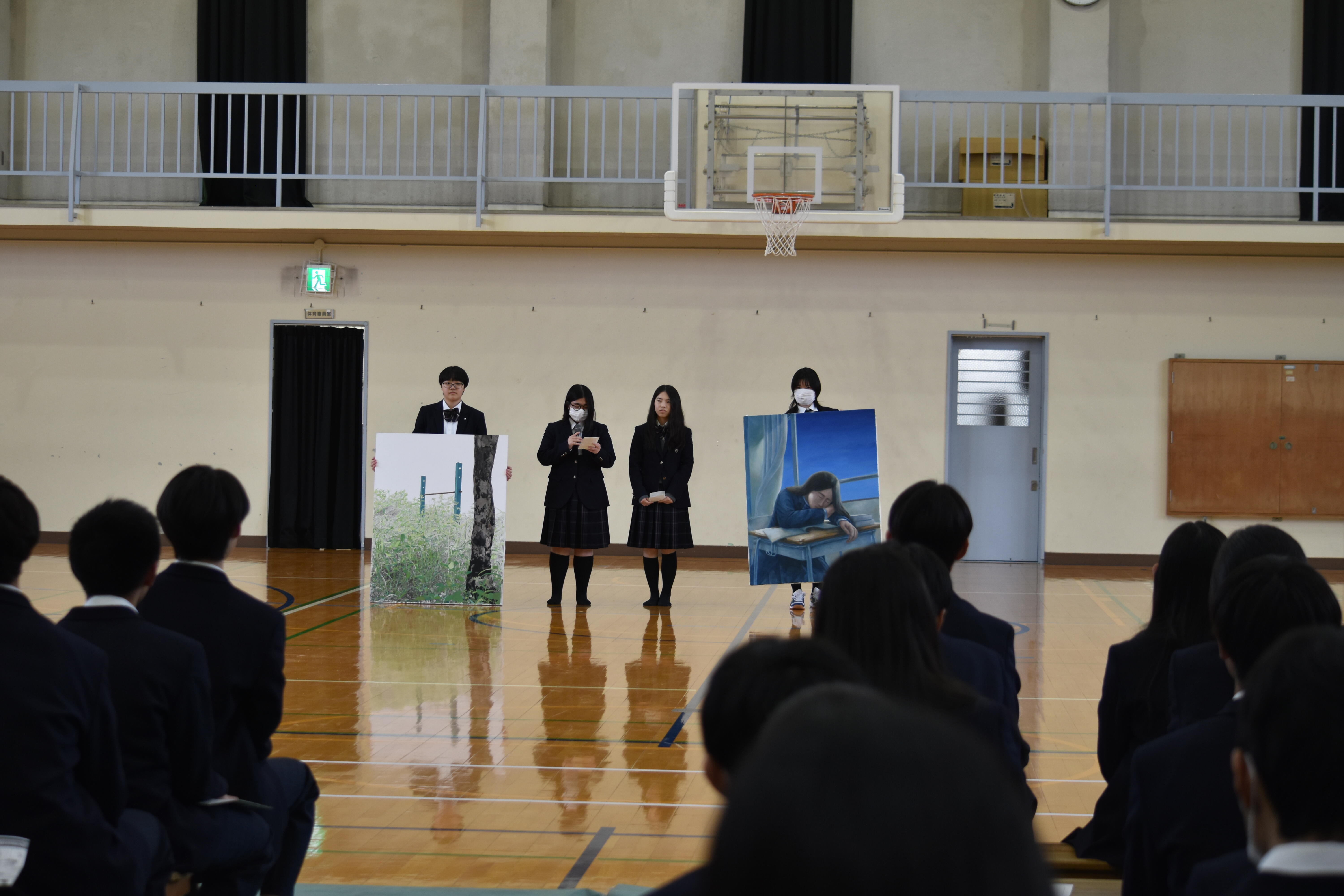 そして、生徒の相互評価と本校教員の審査結果を総合的に判断し、高い成績を修めた生徒達を表彰しました。