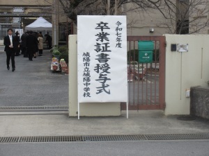 第70回 卒業証書授与式 行事 2026.03.13 3月13日(金)、第70回卒業証書授与式を執り行いました。式は厳かな雰囲気の中で進み、3年生たちは堂々とした姿で本校を巣立っていきました。これから始まる新しいステージでも、城陽中学校で身につけた力を生かし、それぞれの場所で活躍してくれることを期待しています。 また、在校生の皆さんには、先輩方がこれまで大切に築いてきた伝統を引き継ぎながら、城陽中学校をさらにより良い学校へと発展させていってくれることを願っています。 閲覧数: 11