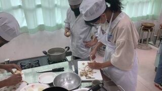 本日の惇明小学校 6年生調理実習 今回の調理実習では、「ジャーマンポテト」を作りました。じゃいがいもの皮をむくのが初めてでした。ピーラーを使って、皮をむいたり芽を取ったりしました。また、今回はじゃがいもをゆでてから炒めるという、2つの調理方法で一品を作るというのが初めて... 2025.11.19 本日の惇明小学校