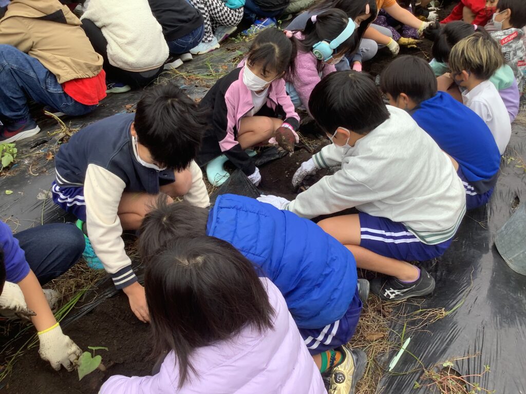 「いもほり」 Twitter Facebook はてブ Pocket LINE コピー 2025.11.26 3年生は、くすのき学級の友達と一緒にいもほりをしました。大きなサツマイモや丸い形のサツマイモ、不思議な形のサツマイモなど、たくさん掘ることができました。土で手が真っ黒になりながら、楽しく一生懸命掘っていました。