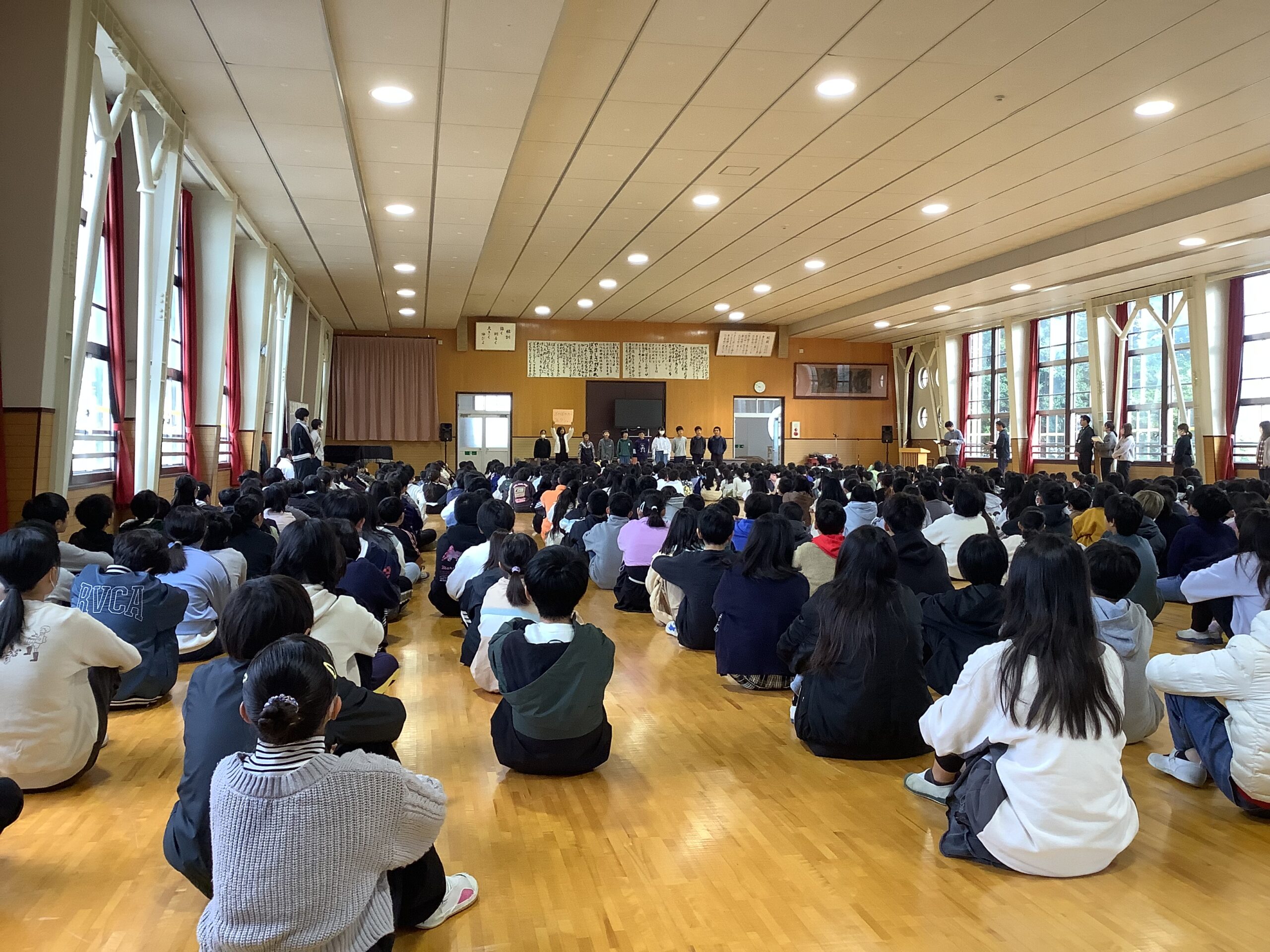 「人権はじまりの会」 Twitter Facebook はてブ Pocket LINE コピー 2025.12.01 人権はじまりの会がありました。テーマは「見つけよう・伝えよう・広げよう 友達のいいところ」です。一人一人個性ある子どもたちみんなが幸せに生きられるように、相手を大切にするとはどういうことなのかを全校で考える時間となりました。