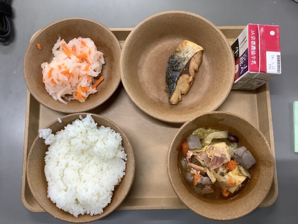 今日のメニューは、ご飯、ぶりの照り焼き、紅白なます、黒豆のうま煮という、お正月メニューでした。