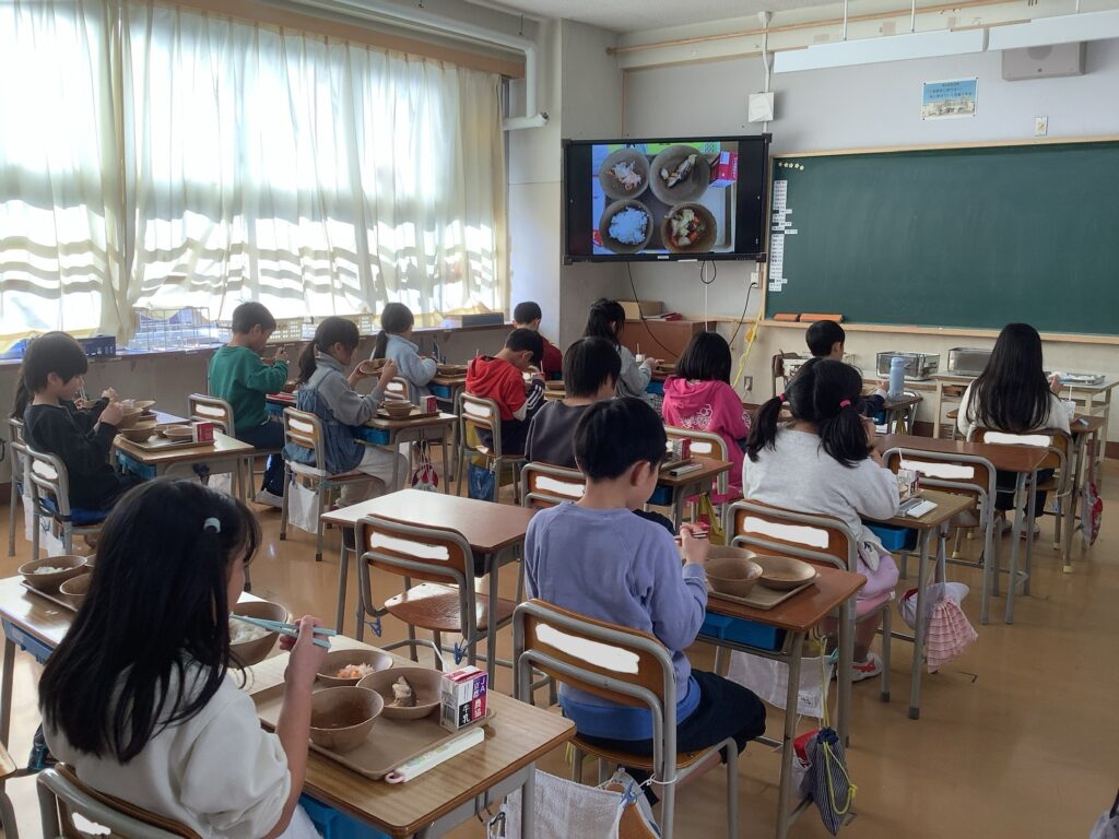給食当番は、「○年○組です。3学期もよろしくお願いします。」と学期初めの挨拶してから給食室に入りました。