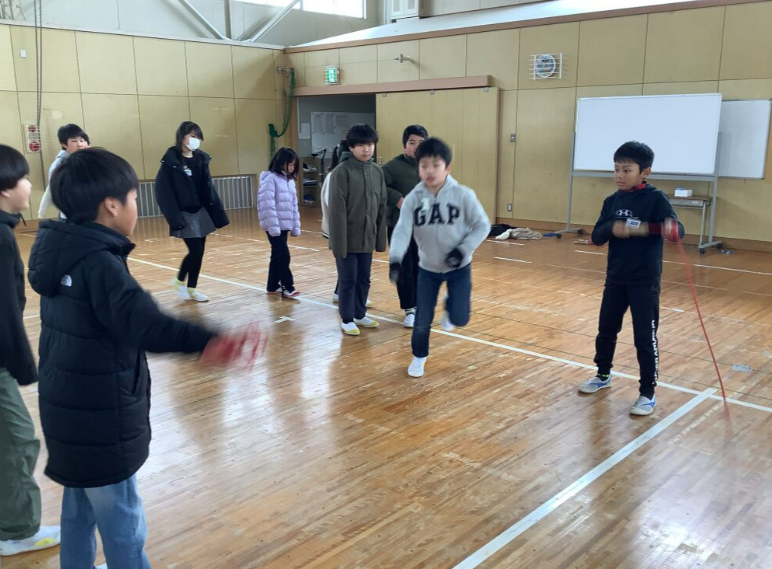 惇明小学校では、各学級で長縄の練習に取り組んでいます。