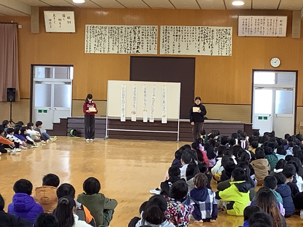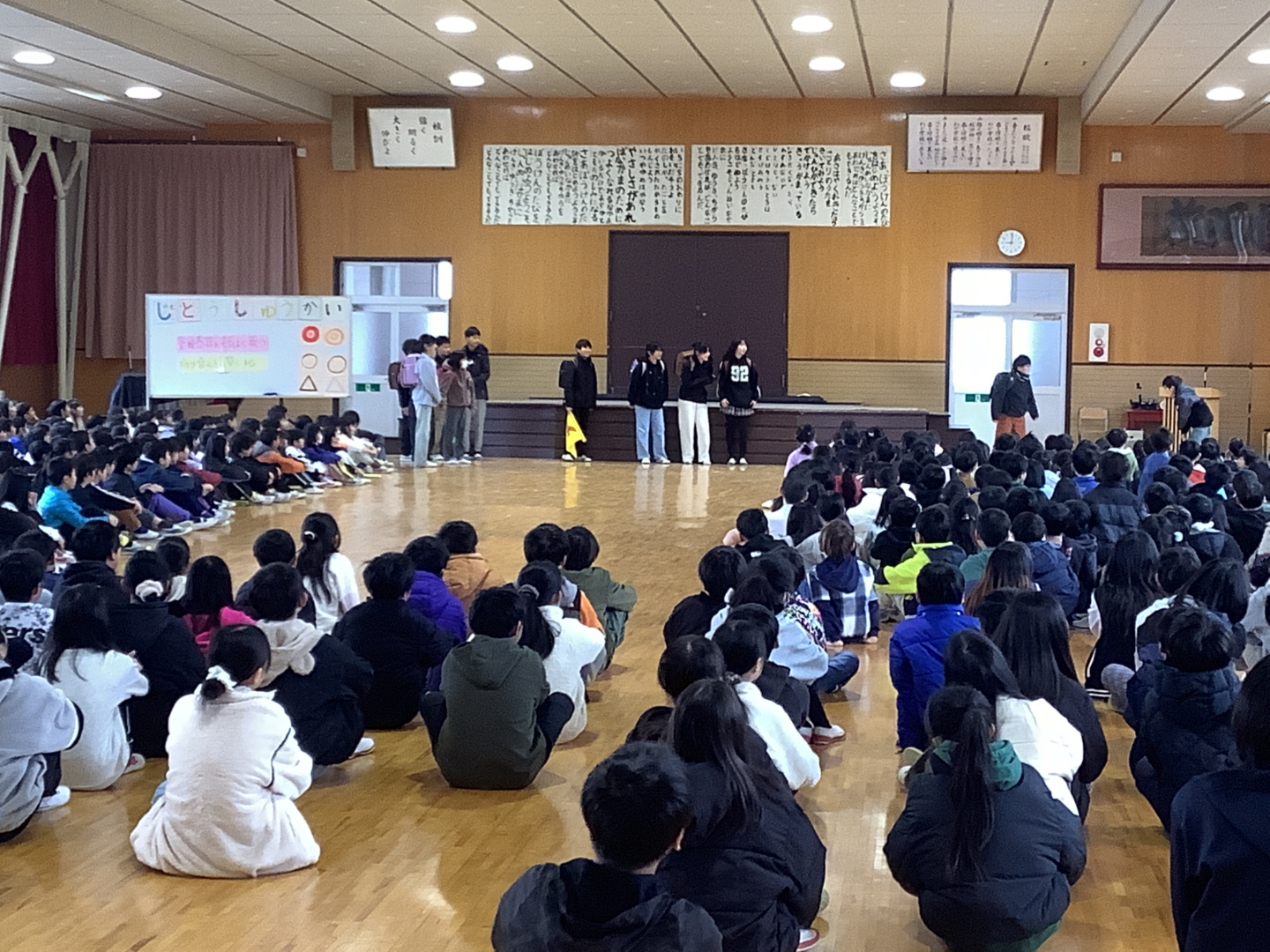 児童集会 Twitter Facebook はてブ Pocket LINE コピー 2026.02.13 本日は児童集会でした。2月の目標は「安全に登下校し、ルールを守って楽しく生活しよう」です。安全な登下校について全校で確かめ合いました。委員会からの発表やクラスからの発表など、様々な発表があり、大盛り上がりでした。