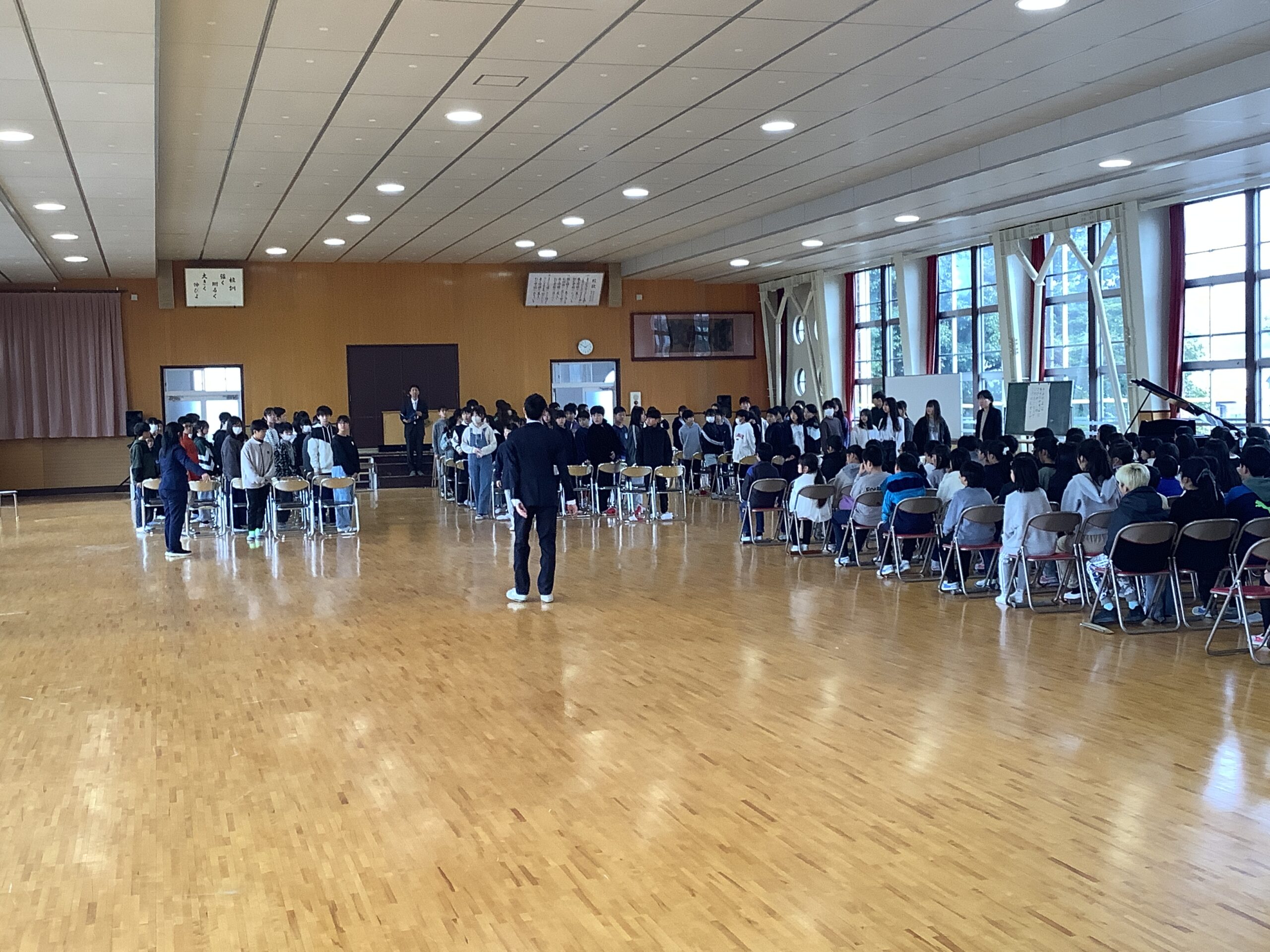 今日は、5年生の演奏に合わせて入場する練習をしました。