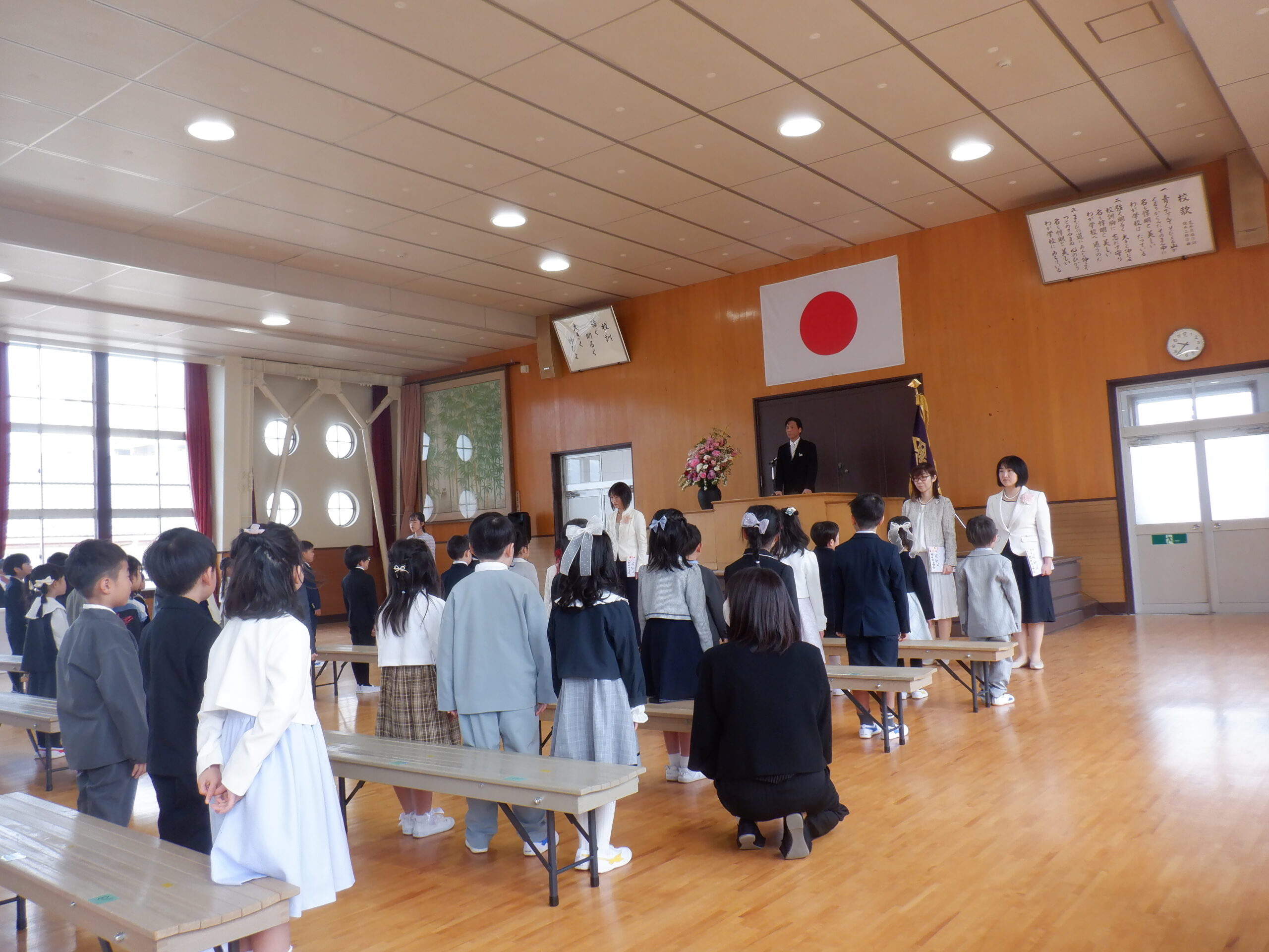 昨日、令和8年度の入学式が行われました。新1年生は75名で、全校児童は550名となりました。1年生の子どもたちは少し緊張した様子でしたが、しっかり話を聞いたり、元気のよい返事をしたりと、とても立派な姿でした。