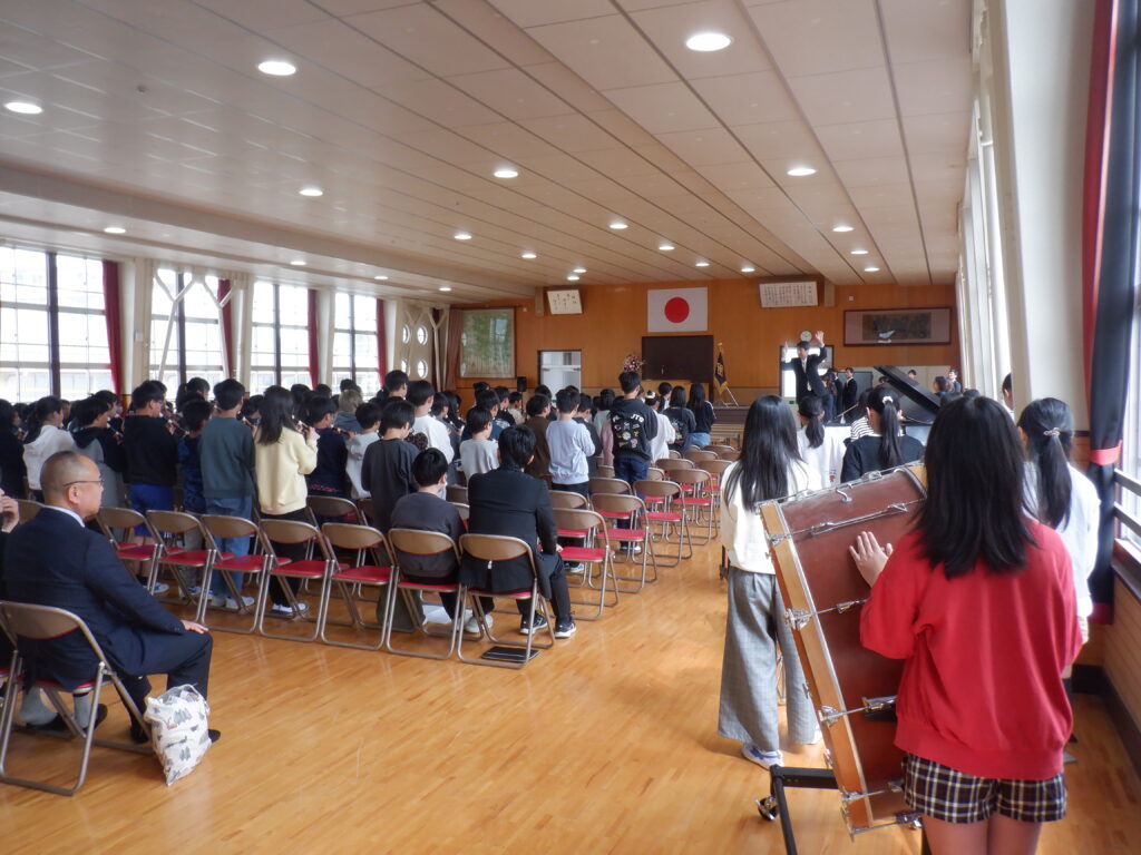 在校生として6年生が参列し、代表2名がお迎えの言葉を述べました。退場時には息の合った「惇明行進曲」を合奏しました。最高学年として、頼もしい姿を見せてくれました。