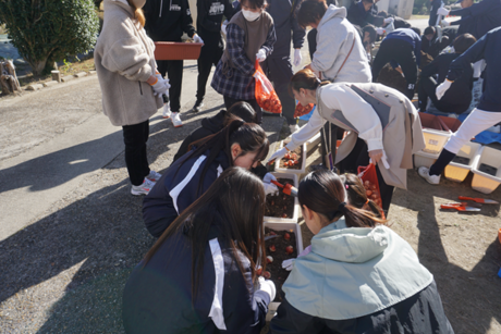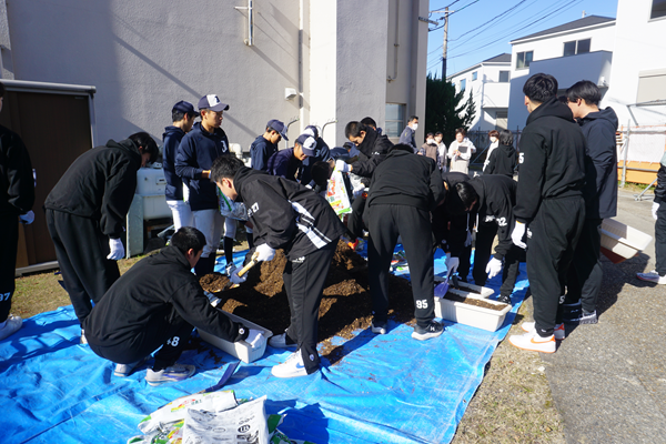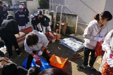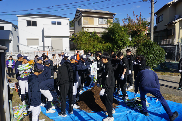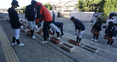 硬式野球部と男子バスケットボール部の生徒たちが手伝ってくれました。皆さんの御協力のおかげで作業を完了することが出来ました。