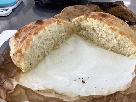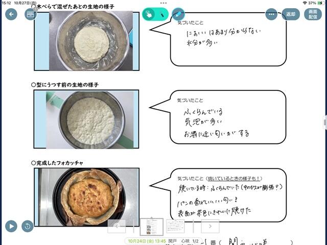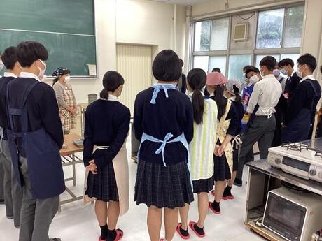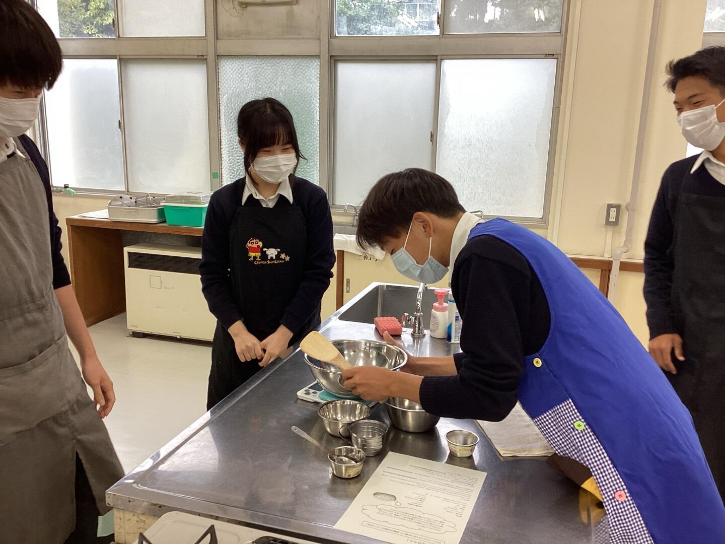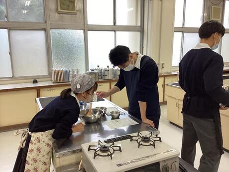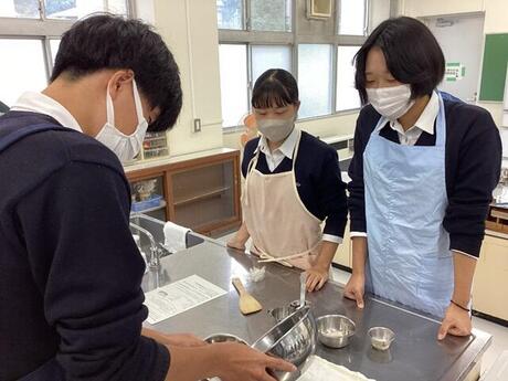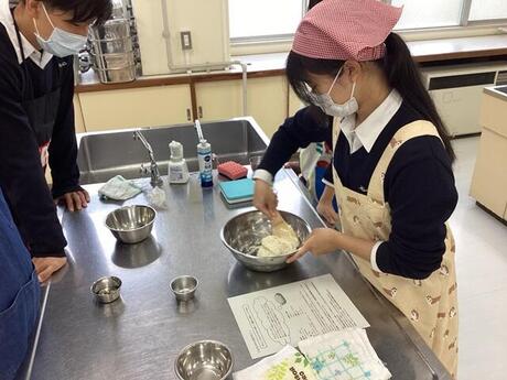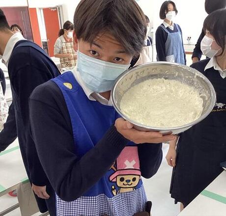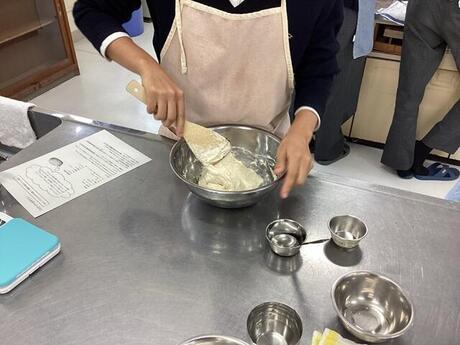 講義や実習の指導は、家庭科の教員が担当し、「生物」×「家庭科」の横断的な学習が行われました。生徒からは、「発酵前後の生地を比較して、こんなにも変化があることに驚きました。」「発酵ってすごいなと思いました。」「食塩が発酵を抑制すると聞いたが、なぜか知りたい。」「材料を混ぜることで生地の様子が変わり、化学反応が起こっていることを実感しました。」「二酸化炭素の気泡が、焼き終わりには空洞になっていてふわふわの食感でした。」といった感想が寄せられました。