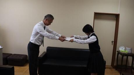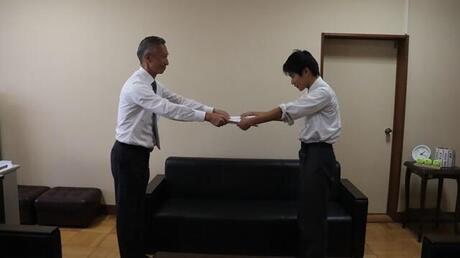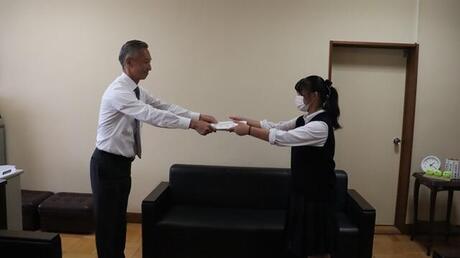 令和7年10月3日(金)に生徒会役員認証式が行われ、校長より認証状が交付されました。