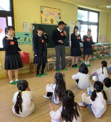 教科書などで勉強し事前に理解し、園児を楽しませたいという思いで意欲的に練習しグループ内での相談を重ね、高校生相手にリハーサルをして実習にのぞみました。当日は想像していた以上に様々な反応を子園児が見せてくれました。高校生たちは子どもたちが見せる反応1つひとつを丁寧に受け止め、コミュニケーションを取りながら工夫を凝らし、一緒に楽しむことができました。
