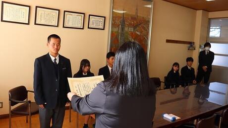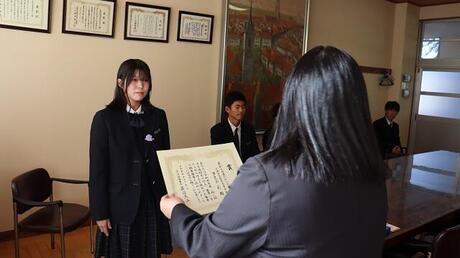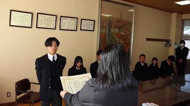 令和7年12月9日(火)、「令和7年度 税に関する高校生の作文」の入賞者が宇治税務署長より表彰されました。