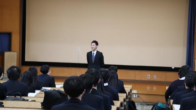 はじめに校長から激励の言葉があり、「受験本番では一瞬一瞬の判断が重要になる。これまで積み重ねてきた努力と自分の信念を貫くためにも、心を整え、落ち着いて本番に臨んでほしい」とのメッセージが送られました。
