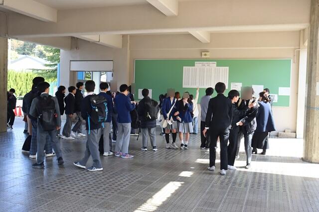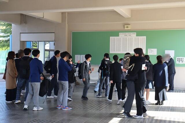 令和8年3月17日(火)、令和8年度入学者中期選抜合格発表を10時半より本校で行いました。早くから待っていた中学生のみなさんが、発表開始時間とともに合格者受付番号を張り出した掲示板の前に集まり、合格した受検者からは大きな歓声が上がり、抱き合って喜んだり、満面の笑みがはじけていました。
