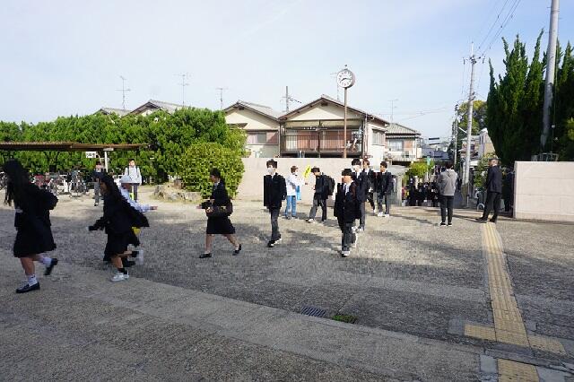 本日は、城陽警察署および地域交通指導ボランティアの方々にも協力していただき、登校時の交通安全指導を実施しました。生徒たちは、指導にしっかりと耳を傾けるとともに、明るく元気に挨拶をする姿が見られました。