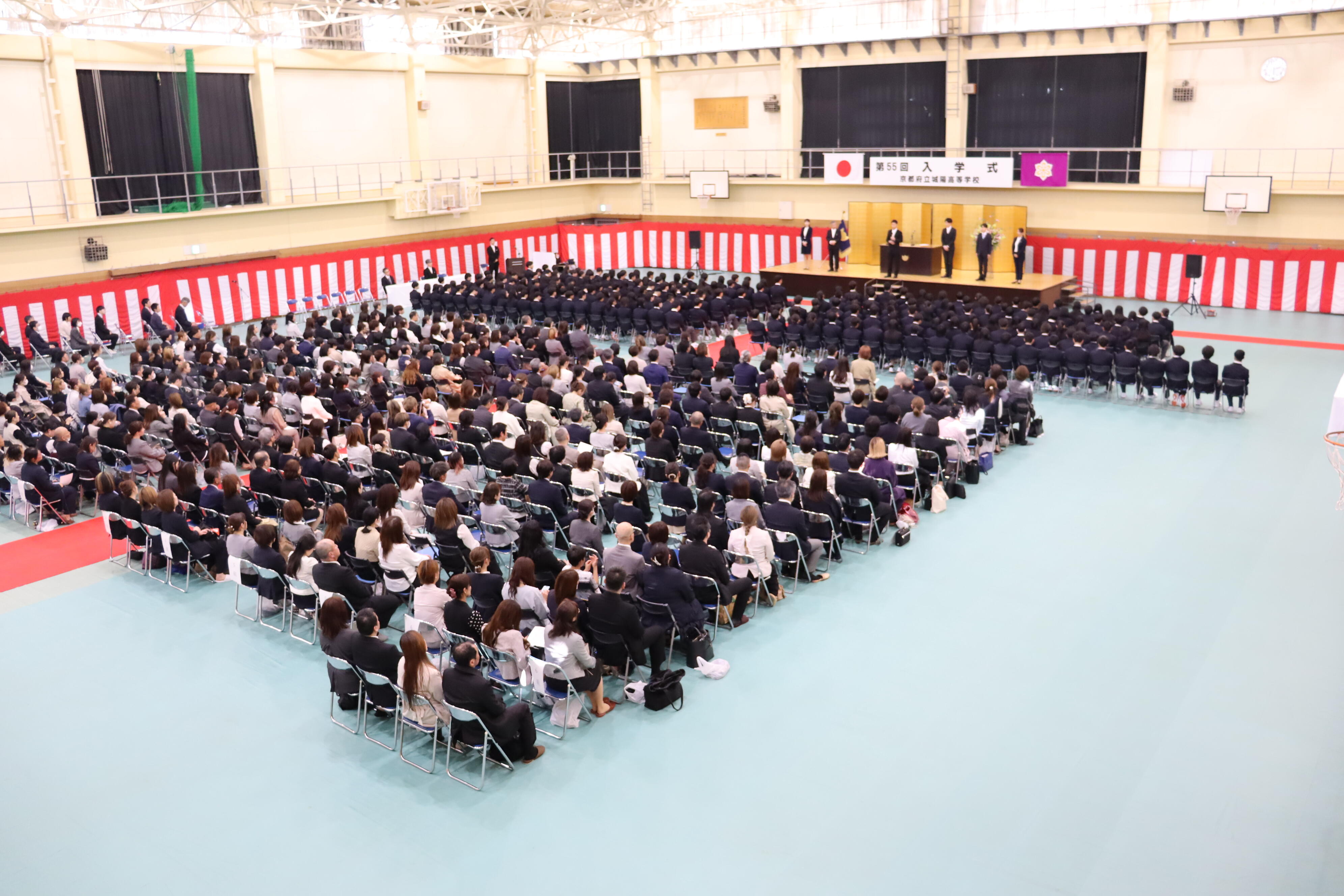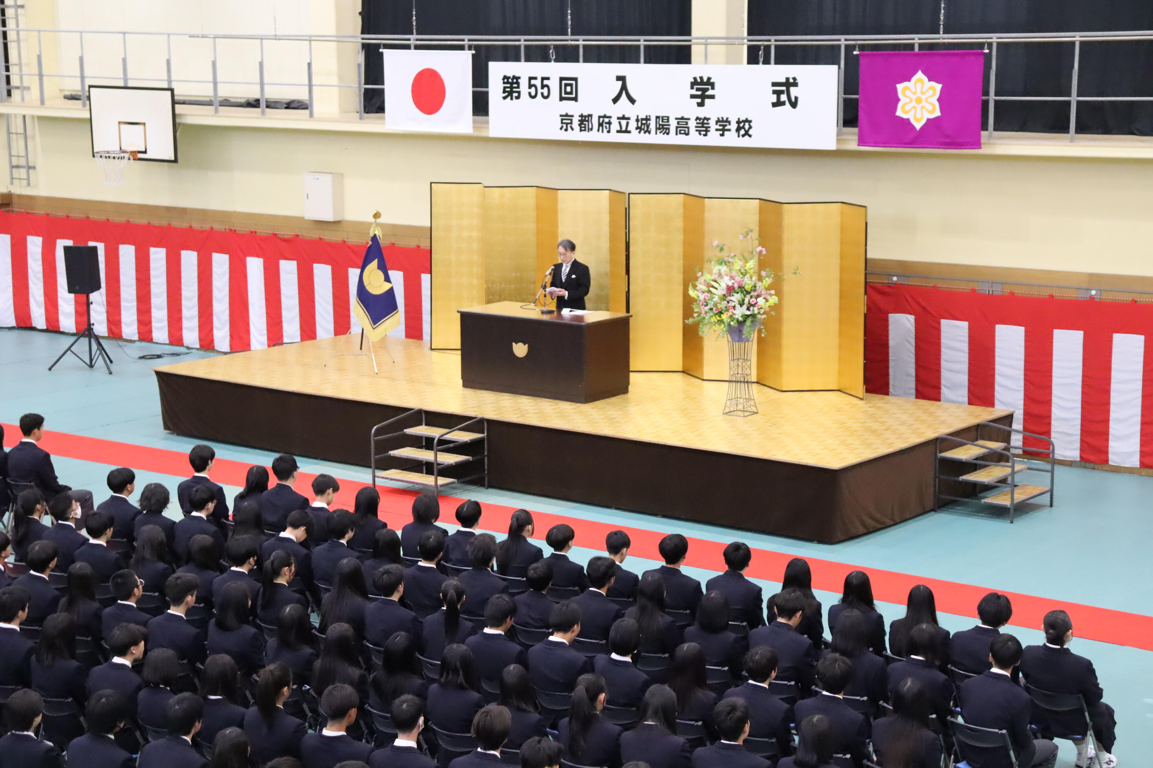 令和8年4月8日(水)、第Ⅰ体育館において第55回入学式を挙行しました。本年度は226名の新入生を迎え、新たな学校生活がスタートしました。新入生たちは、緊張した面持ちの中にも、高校生活への期待を感じさせる表情で式に臨んでいました。