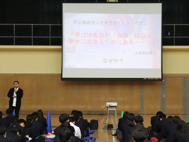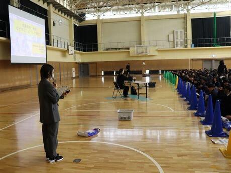 令和8年4月9日、第1体育館にて今年度の「総合的な探究の時間」1・2年生合同オリエンテーションを開催しました。