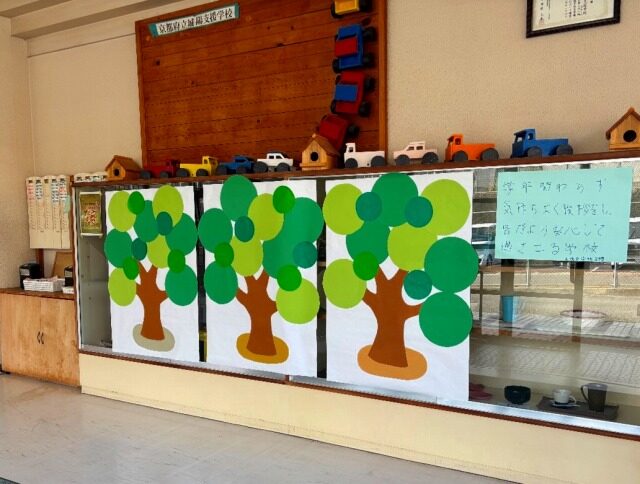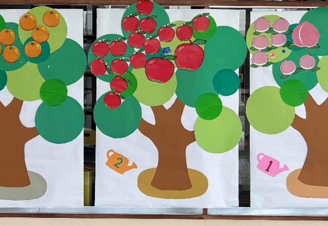 “あいさつの木”が、たくさん実っています。2日目は、さらに意識が高まり、気持ちの良いあいさつで、学校が明るい雰囲気となっています。実った果物は、早くも10個を越す学年も・・・。果物が10個集まると、ビッグ果物へと変身します。明日も、気持...