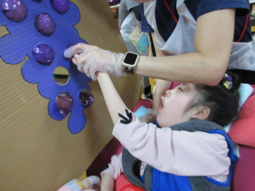 【ほっと】2学期 授業の様子 1Fグループ 最近の様子 2025.09.19 9月に入り2学期の授業にも慣れてきている様子が見られてきました。1Fグループは「ひっぱる」「おす」「つぶす」などテーマにそった活動に取り組んでいます。先生と協力してラーメンの麺をひっぱったり、手紙をおして渡したり、葡萄をつぶしたりしています。上手く出来たときに先生と顔を合わせる姿や、葡萄を押す感触を楽しむ姿が見られました。 閲覧者数: 74