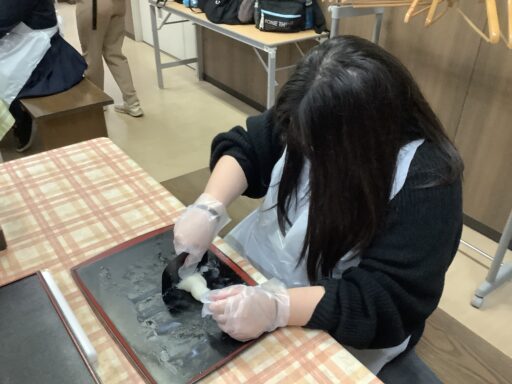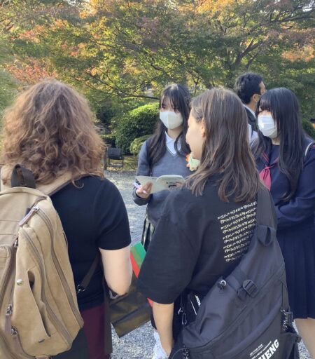 九条・京都駅周辺に校外学習に行ってきました。「京都銘菓おたべ」でおたべ作りの体験をしたり「東寺」では京都の秋の特別拝観期間ということで普段見ることができない五重塔の中を拝観をしたりととっても楽しい一日でした。「東寺」にて海外から来た旅行客の方に英語で質問し、交流をしました。