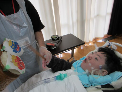 【ほっと】授業の様子 最近の様子 2026.01.22 2学期から引き続き冬をテーマとした授業では、クリスマスやお正月、節分等季節の行事に合わせて学習を行っています。普段病室でリモートを繋いで一緒に学習している友達も、病棟の同じ空間に集まって友達と学習を共にしたり、冬の曲に合わせて鳴らしたい楽器を選んで鳴らしたりと季節の行事を楽しんでいます。また、筆を使って書初めや水墨画をかいたり、でんでん太鼓や鬼の金棒マラカス等を作ったりと子どもたちの素敵な作品も増えてきています。 閲覧者数: 23