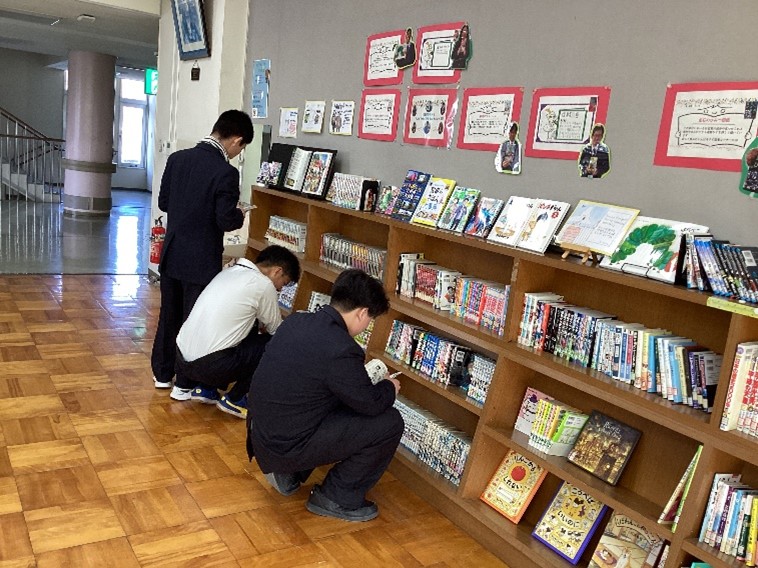 今年度、高等部ビジネス総合科図書委員会では、図書コーナーの本の整理やおすすめ本の紹介ポップづくり、新規購入図書のリクエストの集計等の活動を行いました。みんなが来たくなる図書コーナーづくりを目指して活発に活動に取り組んできました。