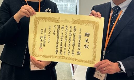 なお今年度、伊藤忠記念財団様より特別支援学校図書支援助成を受け、2月26日に贈呈式に参加しました。これからの読書活動の推進に活用していきたいと思います。