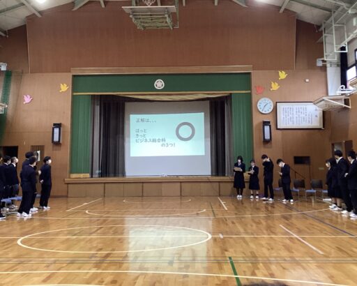 【ビ】新入生歓迎会 最近の様子 2026.04.16 入学式からおよそ1週間が経ちました。1年生は学校見学をしたり、職員室への入退室の仕方を練習したりと少しずつ学校生活のことを知っていく姿が見られます。そんな中、今日はビジネス総合科の1~3年生で新入生歓迎会が行われました。お互いに自己紹介をしたり、楽器演奏やサッカーのリフティング、手品等特技を披露したり終始楽しい雰囲気で会はおわりました。 閲覧者数: 122