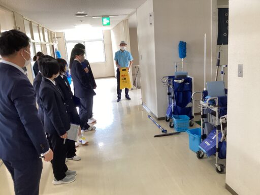 【ビ】流通の授業見学 最近の様子 2026.04.20 4月17日(金)に、1年生は3年生の流通の授業見学をしました。流通では・ビルクリーニング・製品管理・販売の3つがあり、1年生では1年をかけて3つを体験していきます。これらの授業で、働く意欲を培い将来の職業生活や社会自立に必要な事柄を総合的に学習していきます。3年生の学習に向かう姿勢や様子を見て、1年生も興味をもって積極的に質問する姿が見られました。 閲覧者数: 82