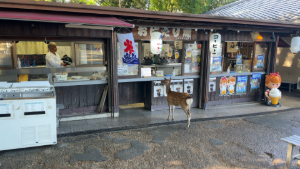 私は、鹿せんべいをあげた直後、鹿の(本気の)頭突きをもらいました・・・。