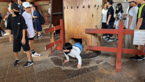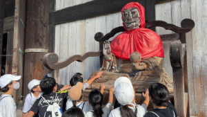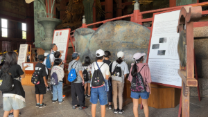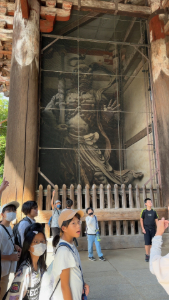 南大門について調べた担当から説明を聞き、大きな金剛力士像を見学