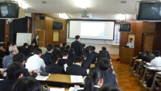 11月26日(水)、3年生を対象に、元木津川市職員 丸田 光昭 様を講師に招き、人権講演会を開催しました。 丸田様から、「他人事と思う人がいる限り、差別はなくならない。」「自分の友達を守る。支える。これこそ人権学習」「他人の命も自分の命...