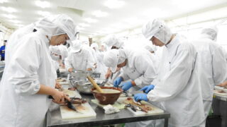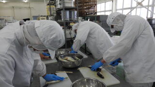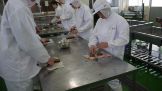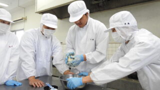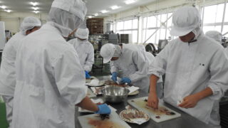 食品経済コース 三枚卸し実技テスト・手作りてんぷら製造