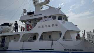 6月14日(土)12時30分現在、能登半島沖を航行中です。 13日(金)20時頃に佐渡沖のイカ釣り漁場に到着し、14日(土)の4時まで操業しましたが、釣果はスルメイカ2杯と不漁でした。しかし、同時に実施した餌を使用した釣りではマサバやウ...
