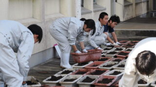 11月4日(火)、栽培環境コース3年生が11月14日(金)に栗田中学校を会場に、栗田幼稚園、栗田小学校、栗田中学校、本校栽培環境コース3年生合同で実施する「花いっぱい運動(秋)」の事前準備を行いました。 土づくりでは、海洋技術コ...