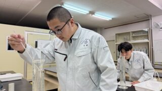 10月9日(木)、栽培環境コース2年生が、総合実習で海水の比重測定や水温測定について学習しました。 海水の比重や水温の正しい測定方法を、赤沼式比重計と棒状水温計を用いて身に付けました。また、海水の比重換算表を用いて塩分を求める計算をしま...