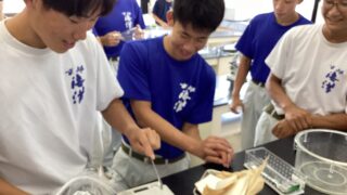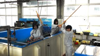 10月23日(水)栽培環境コース3年生のの研究活動で、バイオフロック養殖で育成しているティラピアの魚体測定を行いました。この水槽では、エサとともに砂糖を添加し、飼育水に微生物を増殖させることにより水質浄化を行っています。5月の開始時には...