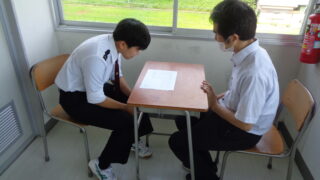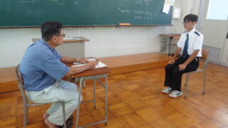 9月16日以降の就職試験に向けて、3年生で就職希望生徒を対象とした面接練習を行っています。 面接をうまく受けるためには場数が大切であり、3学年部と進路指導部が連携を行い、何度も練習を繰り返し、指導を行っています。